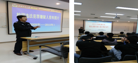 高老师联系实际,采用视频和播放图片的方式,用幽默诙谐地语言讲解了校园各类盗窃、传销、校园火灾及诈骗等消防安全知识和防范措施,并结合与会学生特点和学科特点,重点介绍了校园盗窃和实验室消防安全,通过发生在我们身边的一桩桩盗窃事件和发生在实验室因为操作不当而引发的悲剧,结合案例解说,使同学们对校园盗窃和各类消防隐患有了直观的体会,深切感受到“消防安全,人人有责”的重要性。